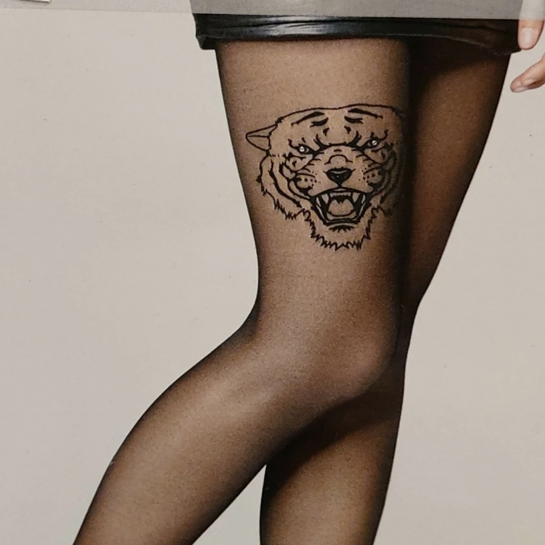 Колготки з малюнком тигра на нозі, ефект тату.