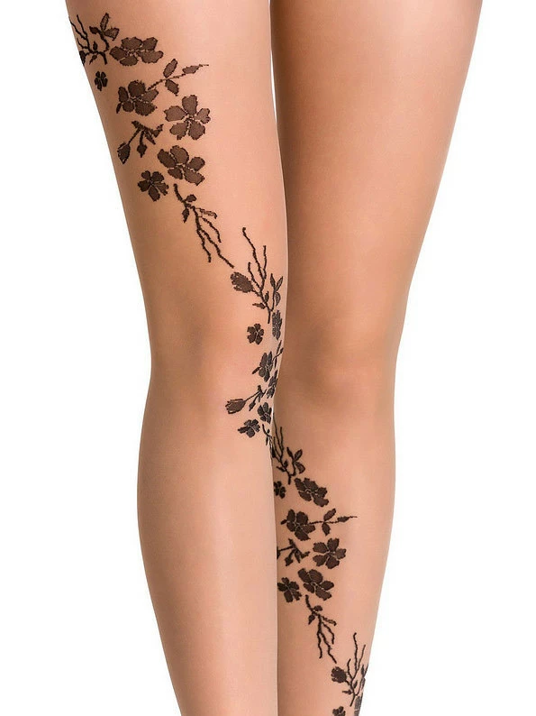 Впечатляющие женские колготки с тонким декоративным рисунком, который окружает ноги. Без обозначенных трусиков и усиленных пальцев.